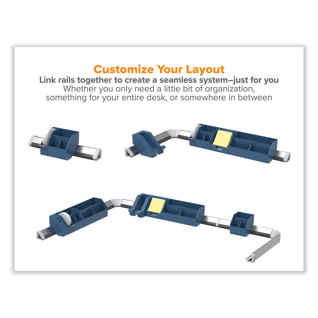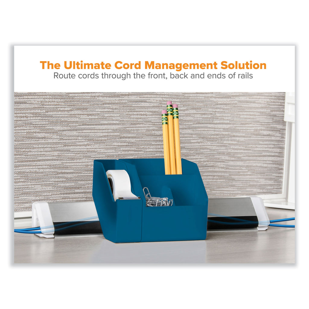 - Includes 12 cord management rail, two 21.5 cord management rails, two short storage bins, one wide storage bin, one tape dispenser, one sticky note holder, one USB phone dock and one power hub.