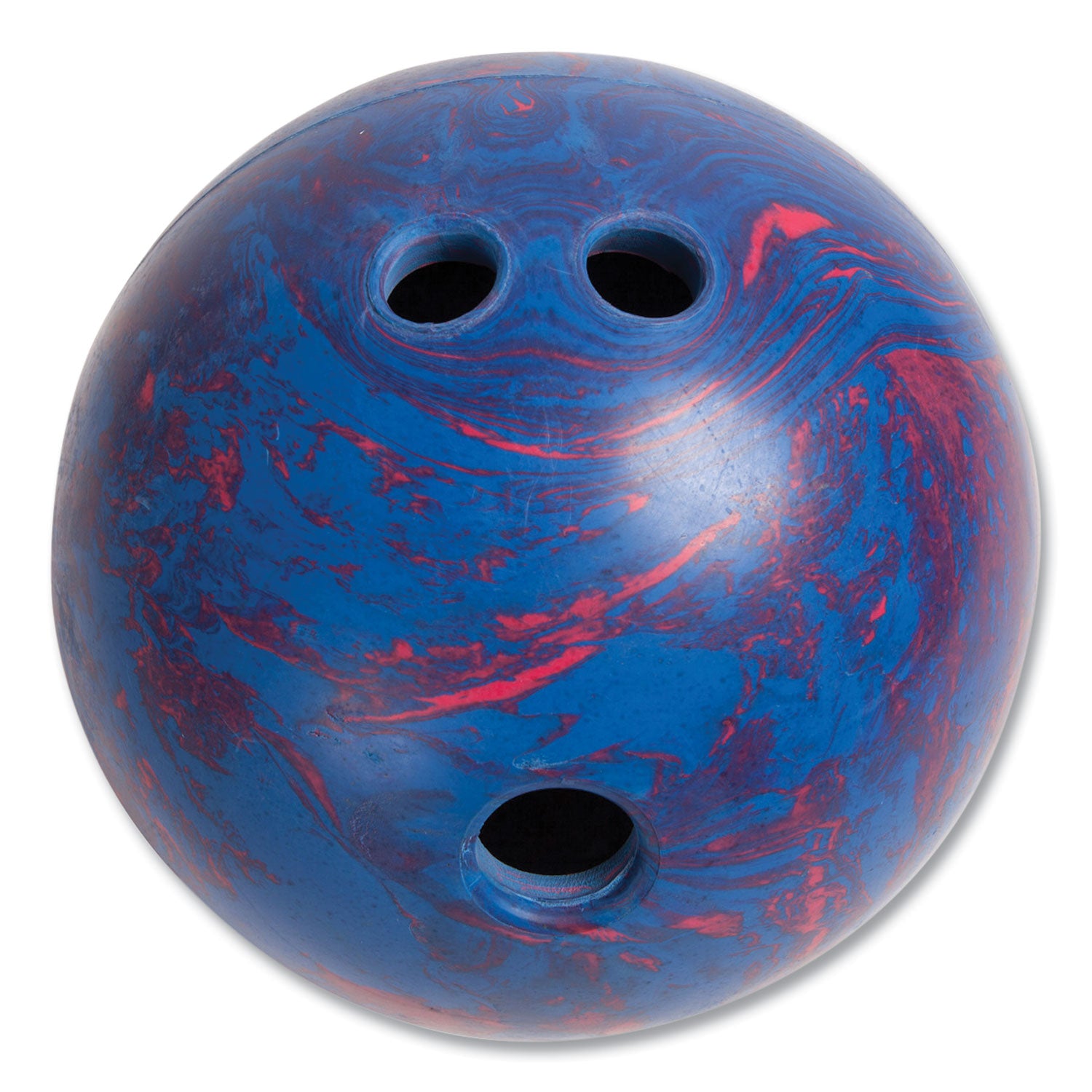 - Includes one 5-lb blue/red rubber bowling ball and ten white plastic pins.