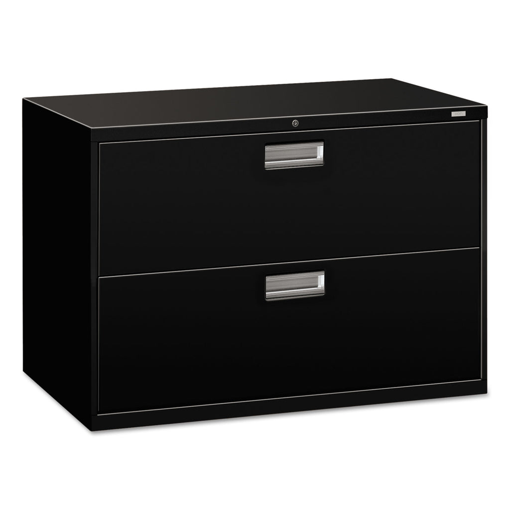 - Drawers include side-to-side hang-rails for letter or legal size filing.