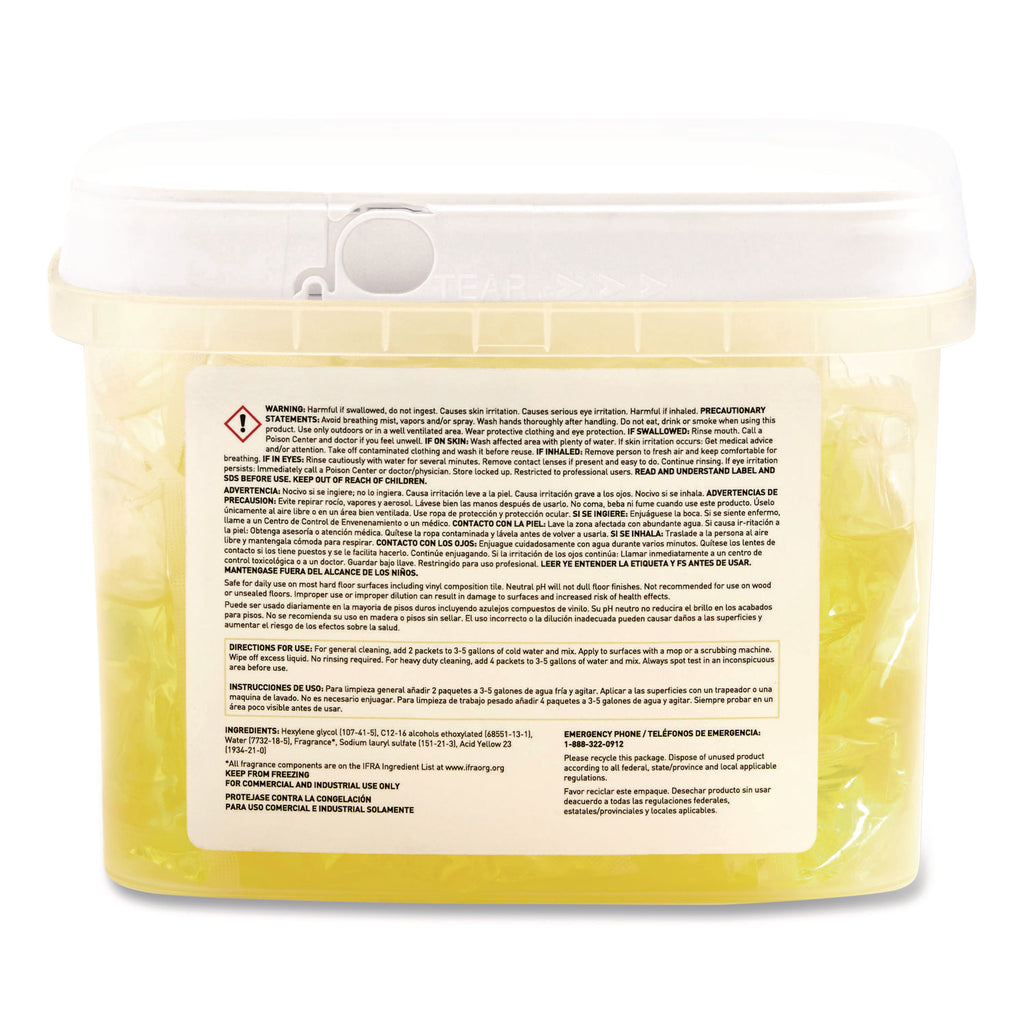 - Water-soluble, portion-controlled packets of liquid concentrate neutral floor cleaner.