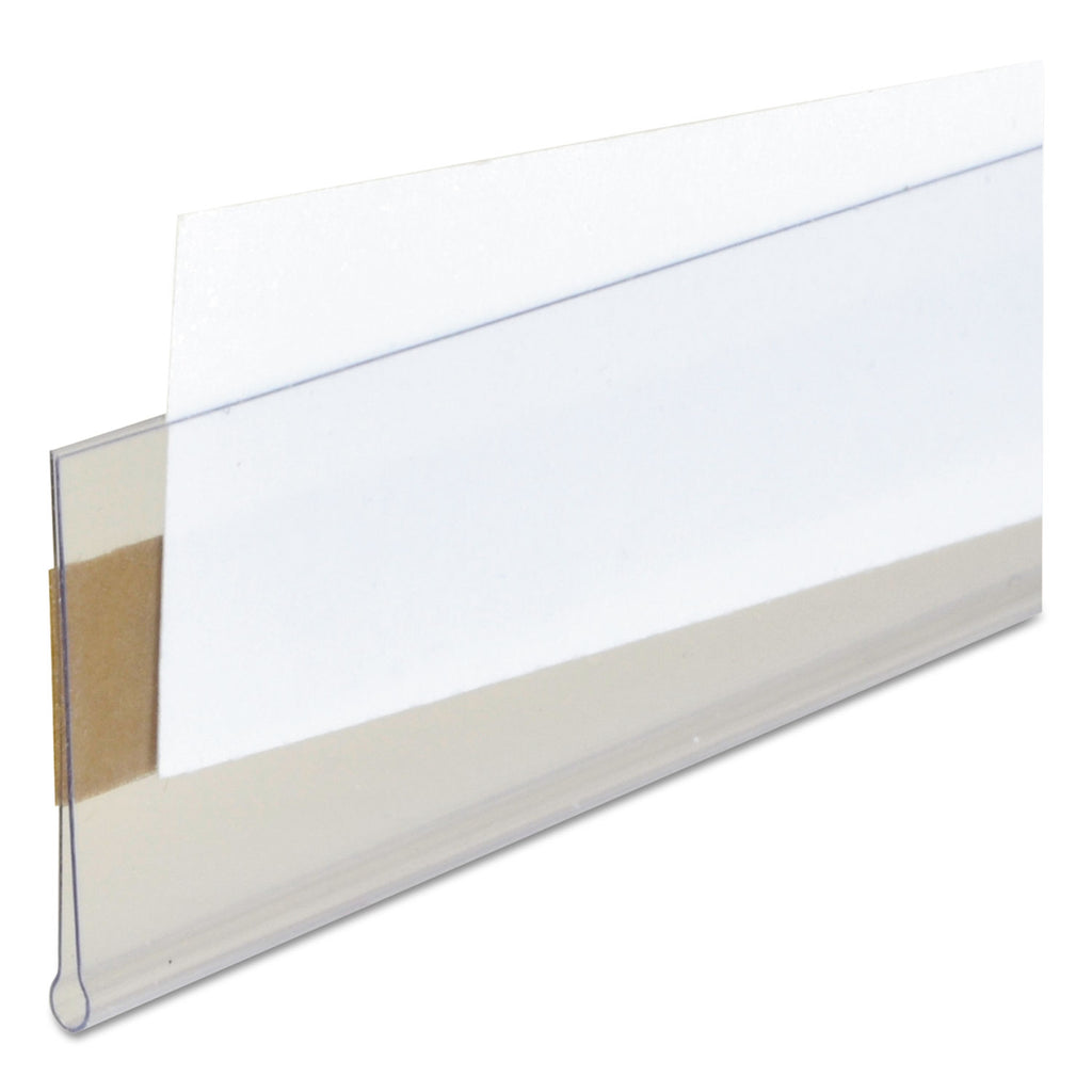 Quick, economical way to label shelves, drawers, files, bins and more. Removable, clear plastic holder attaches to almost any clean, flat surface. Cut to desired size. Easy-to-use open-edge, top loading design. Includes easy-to-change inserts.