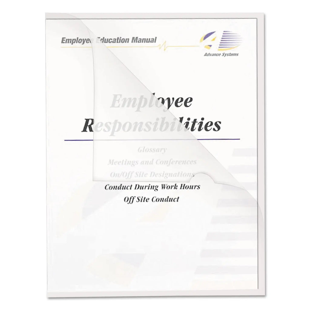 Tear-resistant, static-free folders are thumb cut for easy loading and access. Sealed on two sides for security. Keeps all of your project documents in one place. No photocopy transfer. For 8.5" x 11" document storage.