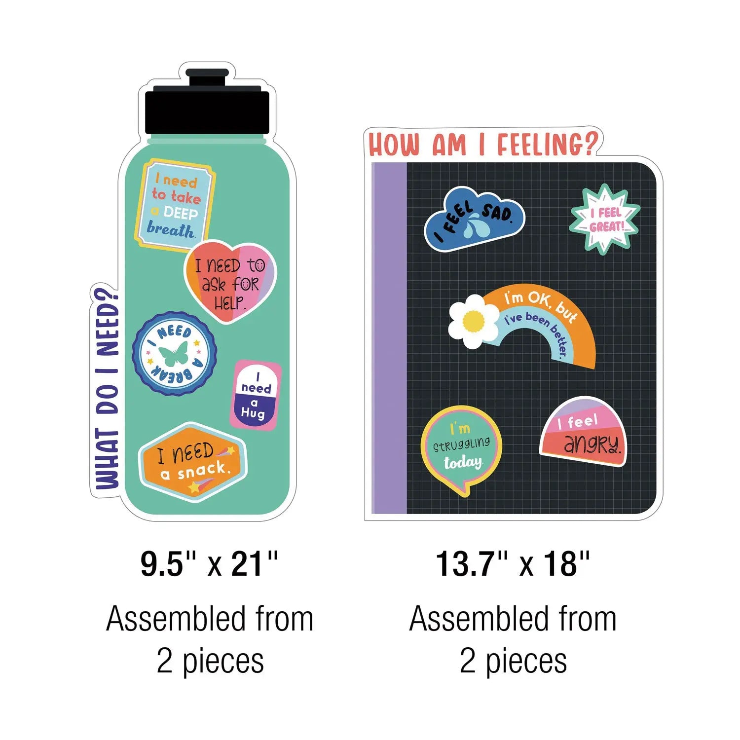 | Package Includes | (1) Header, Assembled from (5) Pieces: Largest: 22.4" x 6.7", Smallest: 15.3" x 2.8"; (1) Laptop, Assembled from (2) Pieces (Assembled Size: 25" x 14"); (1) Water Bottle, Assembled from (2) Pieces (Assembled Size: 9.5" x 21"); (1) Notebook, Assembled from (2) Pieces (Assembled Size: 13.7" x 18"); (7) Motivational Sticker Accents: Largest: 5" x 4", Smallest: 3.3" x 3.2"; (33) Assorted Sticker Accents: Largest: 3.6" x 6.2", Smallest: 1.4" x 1.4" |