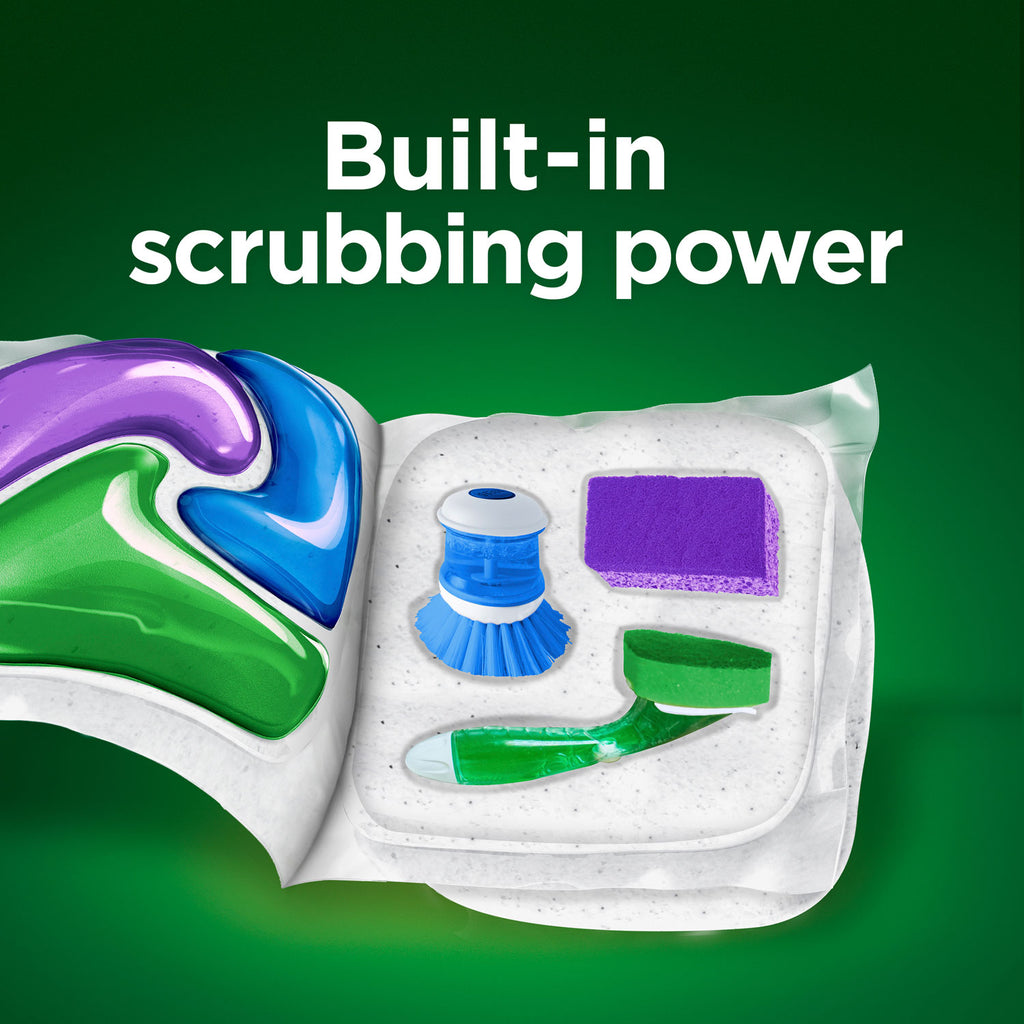 Powers away greasy residue for sparkling dishes. That's because every ActionPac combines the scrubbing power of Cascade and the grease-fighting power of Dawn dishwashing liquid to leave your dishes virtually spotless. Conveniently premeasured with no finicky wrapping-simply load your dishwasher, pop in an ActionPac, and go!
