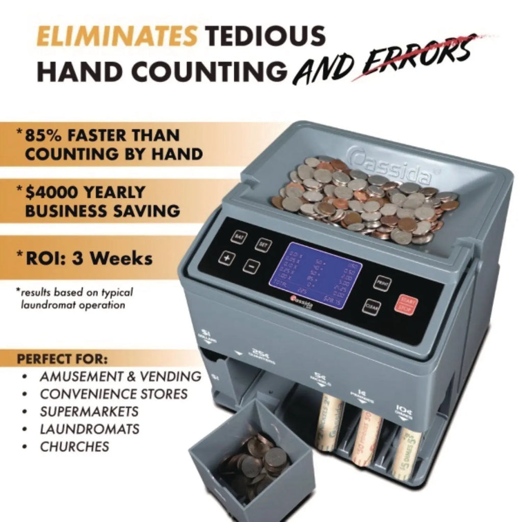 - Streamlines counting, sorting, adding, batching and wrapping tasks for US coins.