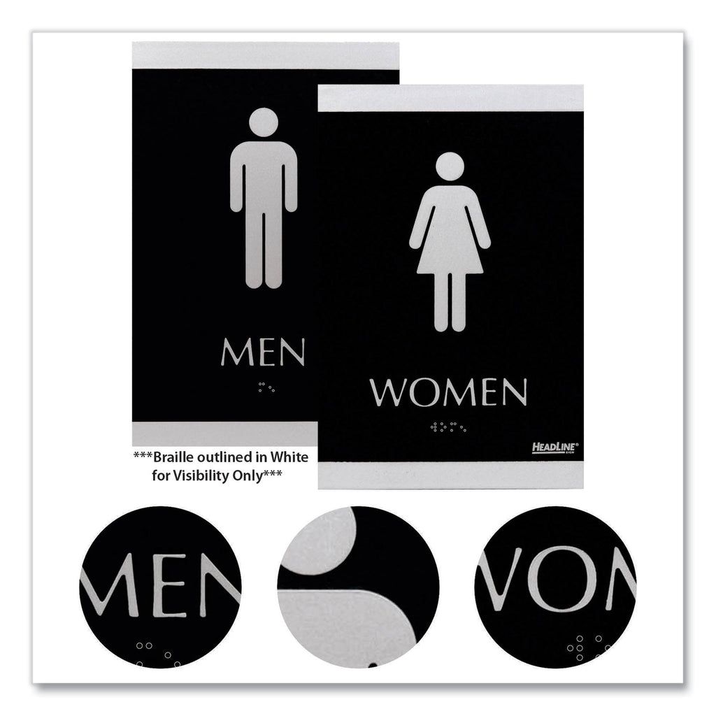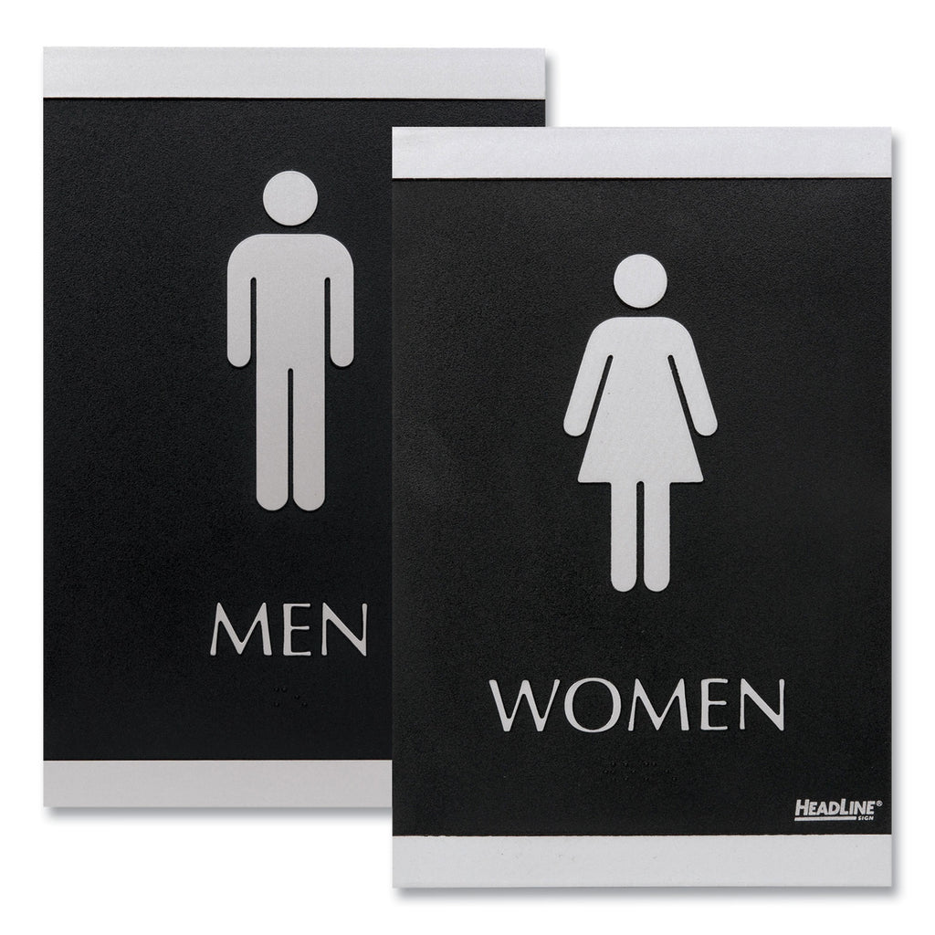 Universally and easily recognizable silver graphics. Raised tactile graphics with Grade 2 Braille. Meets Americans with Disabilities Act (ADA) requirements.