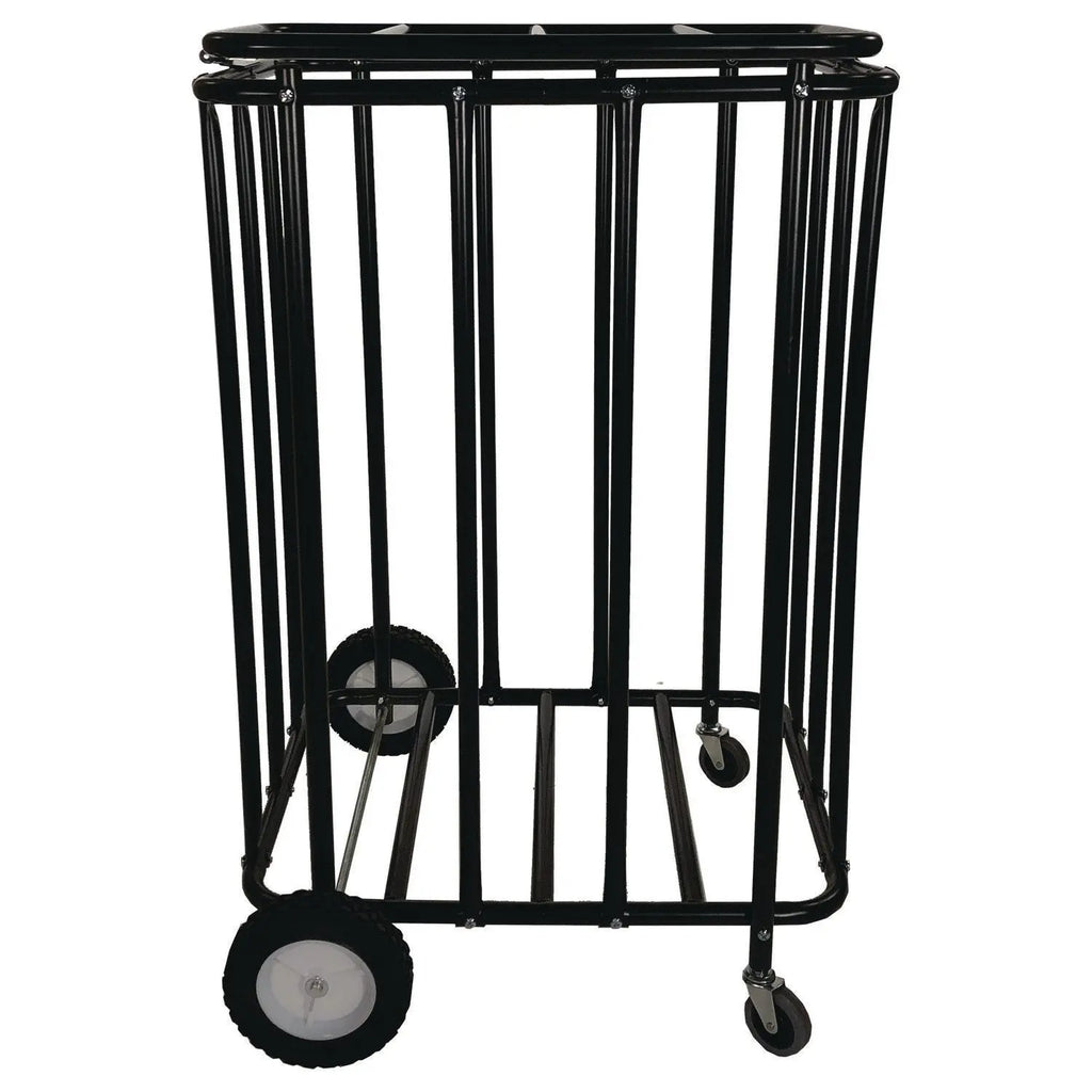 Maximize gym floor space with this ball locker. Made of powder-coated 1" heavy-duty steel tubing, this vertical locker features rugged rear wheels that roll smoothly over tough surfaces, and front non-marring casters that are safe for transporting balls even over the most delicate of gym floor finishes.