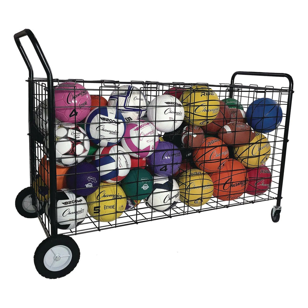 Constructed from heavy-duty powder-coated steel, this ball locker is a rugged option that allows for divided storage. The split tops can be locked individually, and the unit can store up to 30 regulation-size basketballs with ease. The large rear wheels offer increased ease of movement and stability.