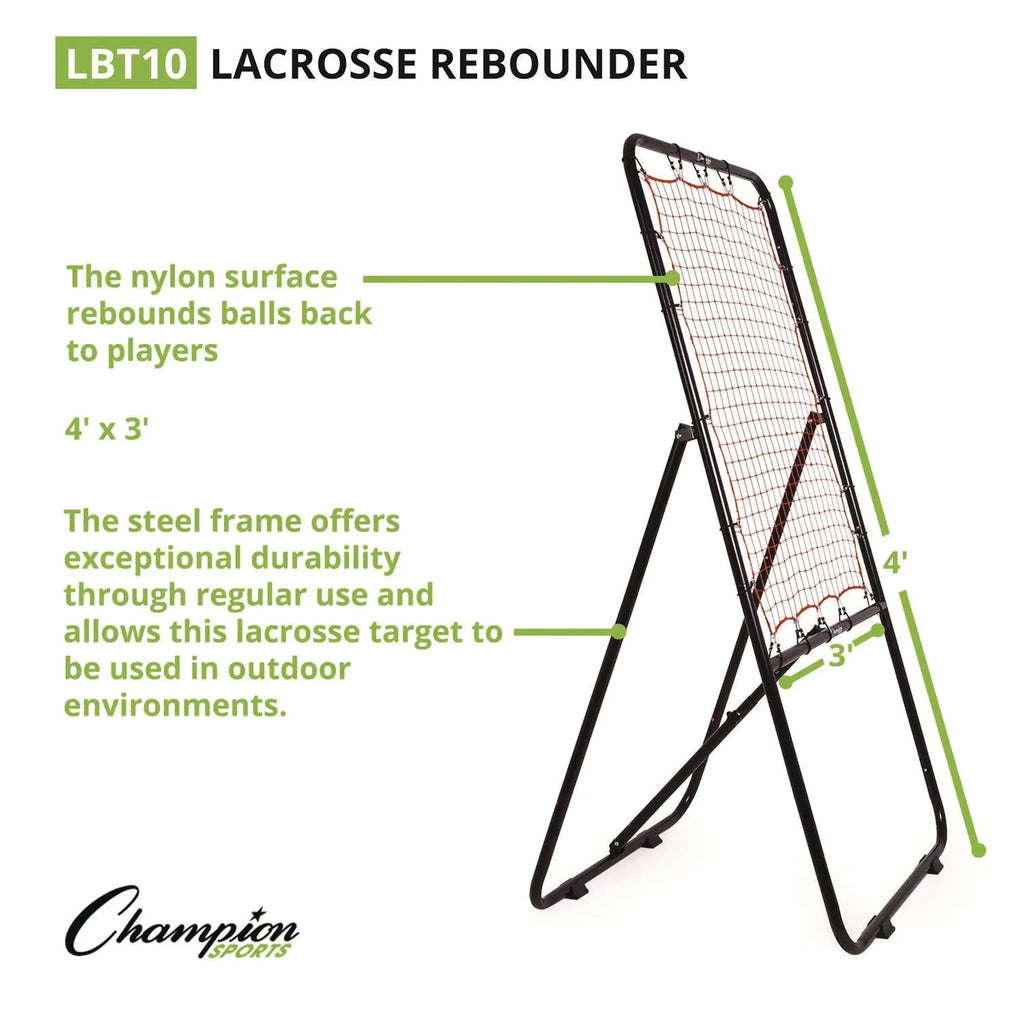 Designed to improve players' passing and shooting accuracy, this rebounder is made with an adjustable frame that offers four different angles for various drills in both small and large areas. The steel frame offers exceptional durability through regular use and allows this lacrosse target to be used in outdoor environments. The nylon surface rebounds balls back to players, and the versatile design of this rebound target can be used in various practice sessions and drills.