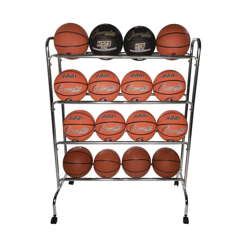 This cart stores balls vertically and features a stable no-topple base. Ideal for maximizing small storage space. Designed with swivel casters, this cart makes it easy to transport your team equipment to your play surface.