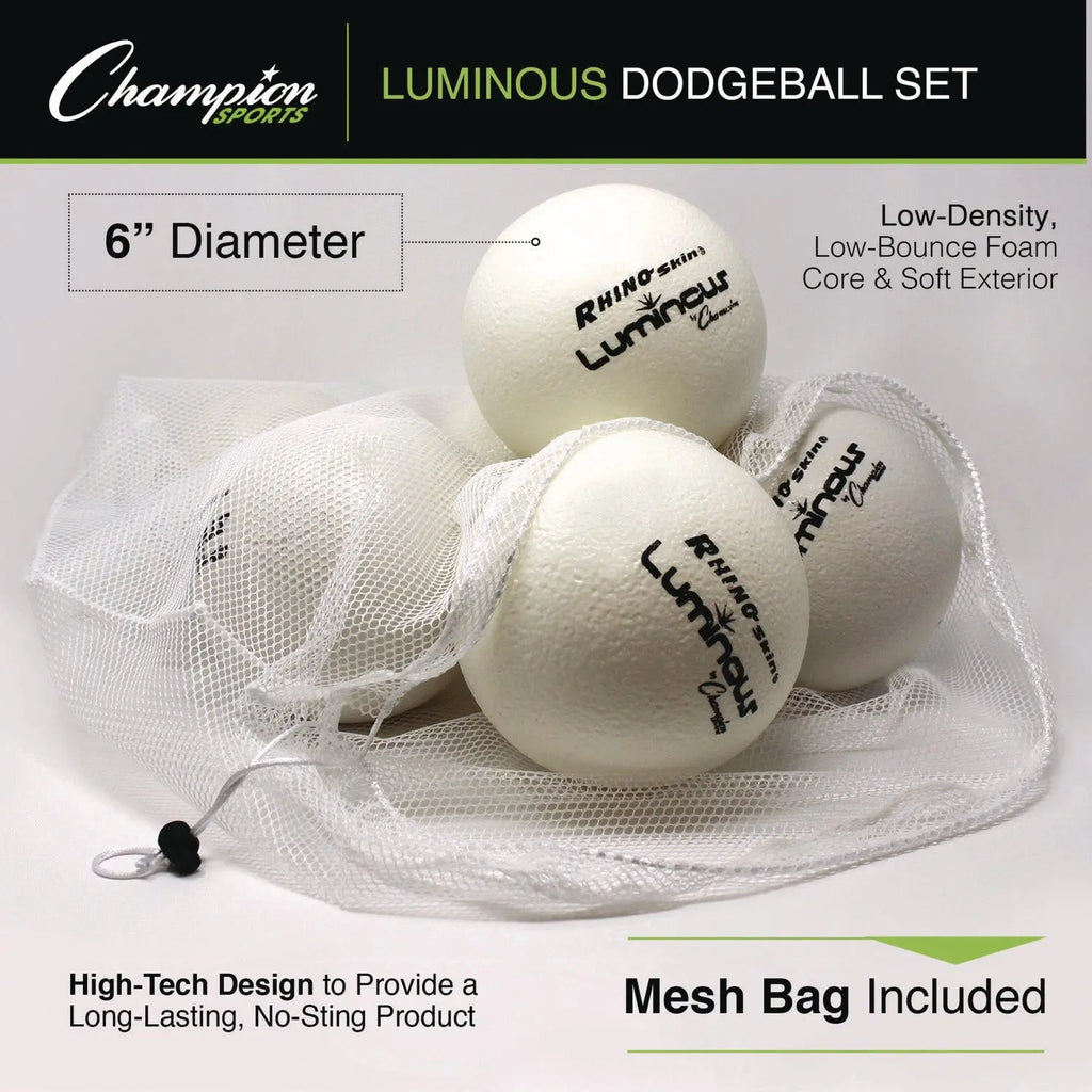 Want a dodgeball that glows in the dark? Look no further than these balls, which utilize a high-tech design to provide a long-lasting, no-sting product that's perfect for gym class, the playground and more. Kids love the bright colors! Mesh bag included.