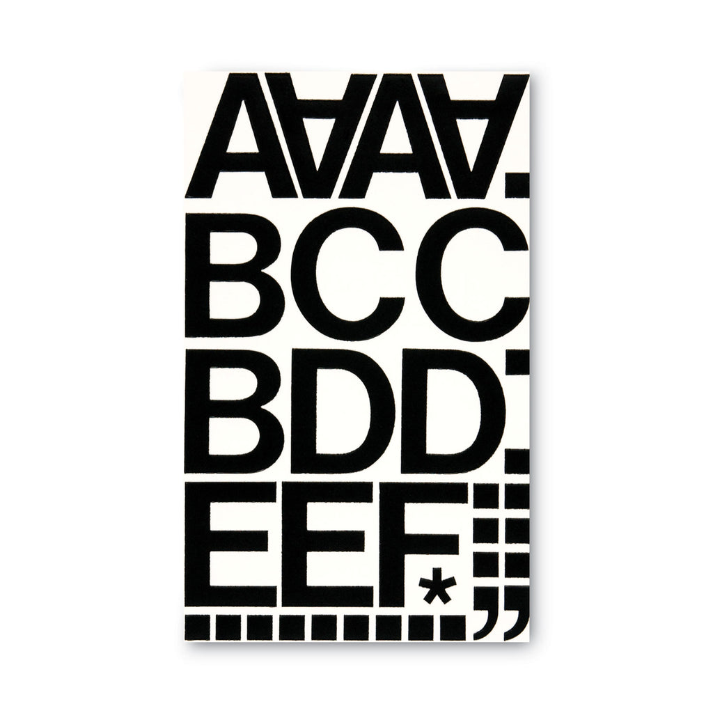For signs, posters and equipment identification. Self adhesive vinyl will stick to most clean, dry surfaces. Can be used indoors or outdoors. Punctuation and monetary symbols included. Permanent adhesive.