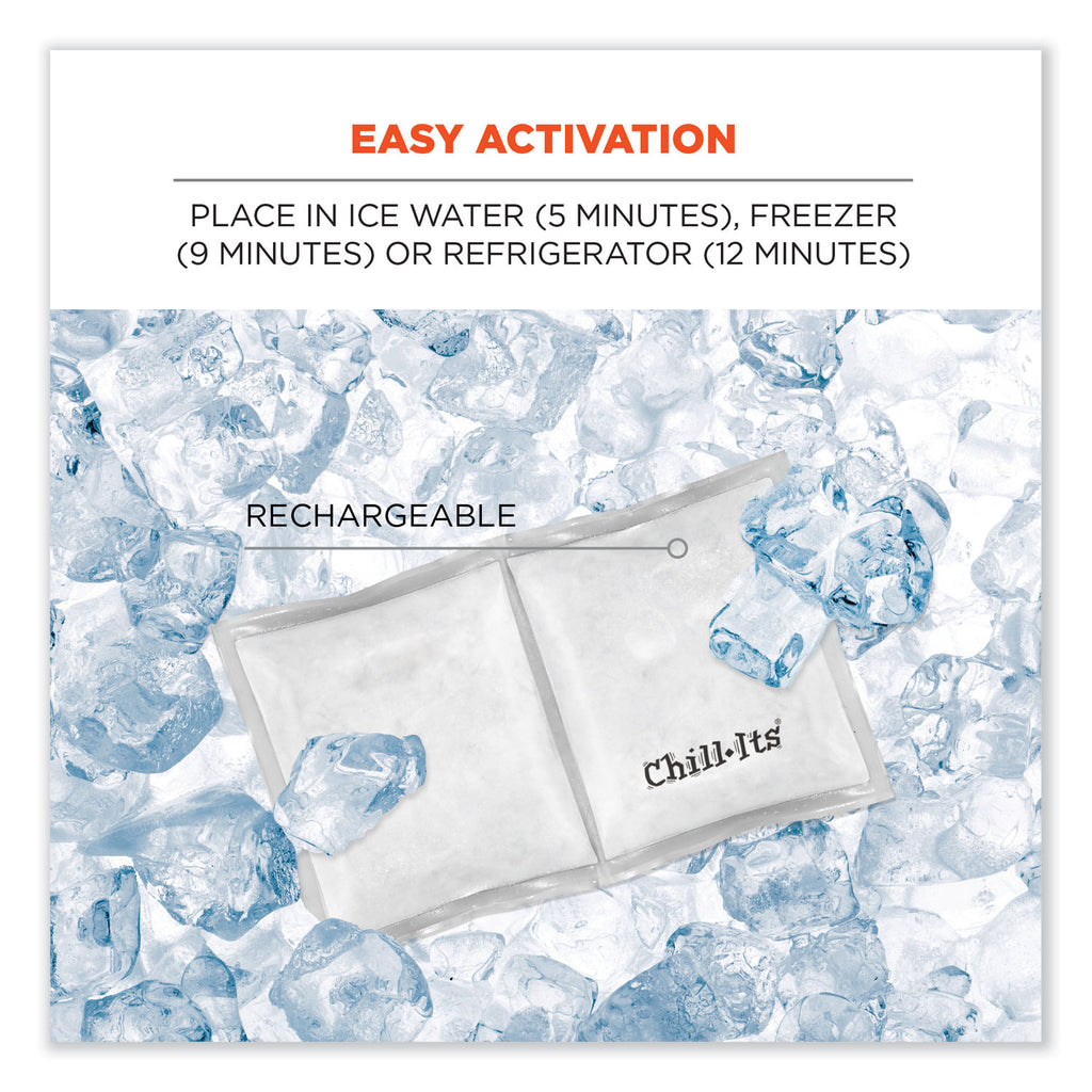 Rechargeable ice pack quickly activates to help keep workers cool, productive and safe in the heat. This pack is specifically designed for compatibility with the Chill-Its 6483 Cooling Neck Gaiter—simply insert the activated pack into the interior back-of-neck pocket for up to two hours of enhanced cooling. For convenience on any job site, there are multiple methods for activating this cooling charge pack. Either place the pack in a cooler of ice water for 5 minutes, freezer for 9 minutes, refrigerator for 12 minutes or near an air conditioner for one to two hours. When activated, the phase change cooling material will maintain a 64° F (18° C) temperature for up to two hours. Simply recharge to reactivate. The cooling pack should be hand washed with a mild detergent and warm water. Dry with a paper towel or cloth. Do not machine wash or machine dry.