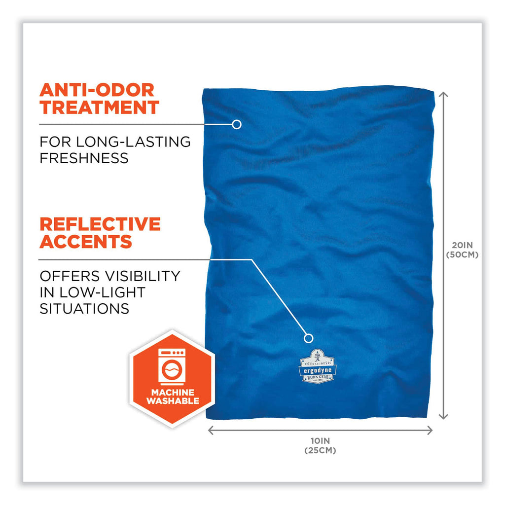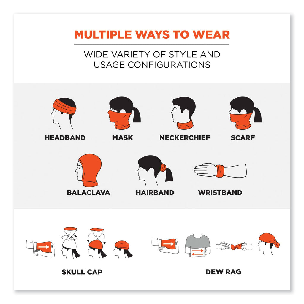 Cooling multi-band offers head and face protection from the sun, dust and flying debris, as well as cooling relief. Plus, it features evaporative technology for immediate cooling, and UPF 50+ protection against the sun's harmful rays when working outside. Simply wet the cooling headwear to activate instant cooling relief that lasts for hours. When activated, this multi-band is lightweight and refreshing for even the hottest days of the year. Anti-Odor treatment keeps it fresh all day long. Hang dry or machine wash as needed. This PPE safety headwear is incredibly versatile. The soft, stretchable knit material allows the multi-band to be worn as a cooling headband, neck gaiter, face mask or face covering, hat, dew rag and more. It can also be worn under a hard hat for moisture-wicking cooling when dry, and instant evaporative cooling relief when wet.