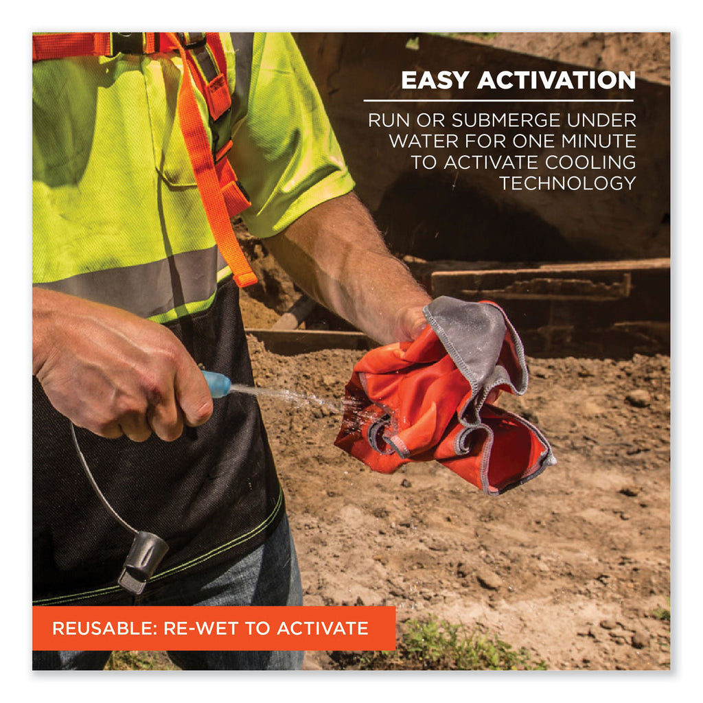 The evaporative cooling towel features microfiber cooling technology for relief in extreme heat. The soft and absorbent microfiber is lightweight and comfortable for bulk-free wear around the neck or under hard hats, and is also rated to UPF 50+ for protection against the sun's harmful UV rays. Heat-related illness continuously ranks among the top causes of worksite accidents and fatalities. Evaporative cooling technologies such as microfiber are a simple, effective and comfortable solution for heat stress prevention. Similar to how sweat cools the body, evaporative technologies use an external water source to draw heat away—helping to regulate body temperature while providing cool relief. When activated, this cooling towel is comfortable and refreshing for even the hottest days of the year.