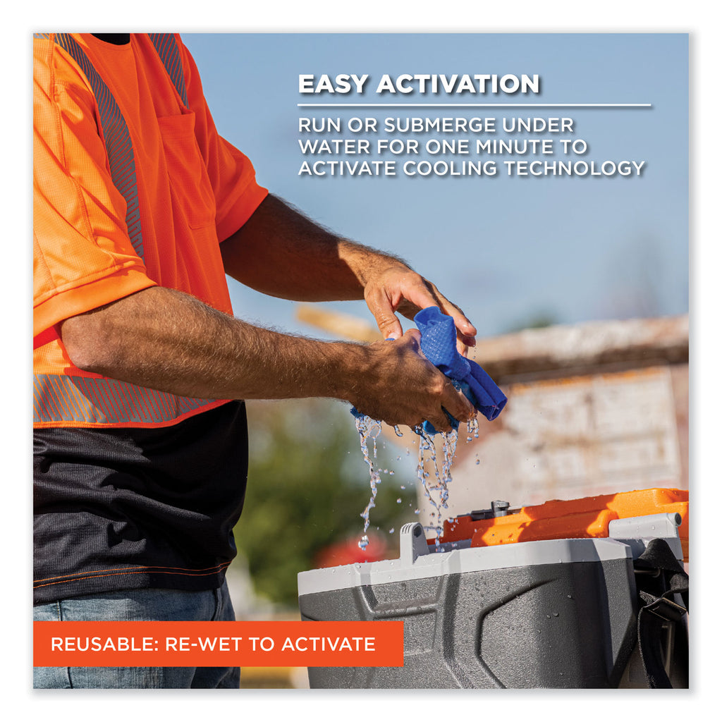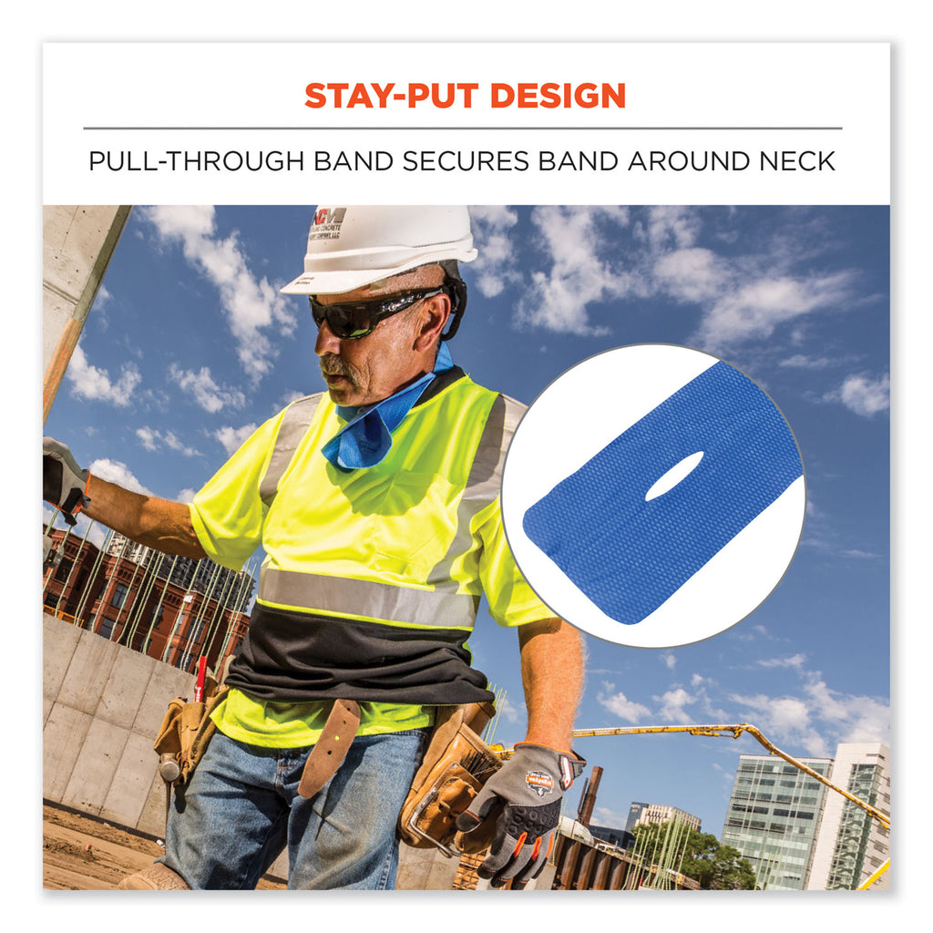 The evaporative cooling band features advanced PVA (polyvinyl alcohol) cooling technology for relief in extreme heat. When wet, this band remains lightweight and comfortable for bulk-free wear around the neck. A unique pull-through design allows the band to be secured around the neck for all-day cooling that stays put. Rated to UPF 50+ protection from harmful UV rays. Heat-related illness continuously ranks among the top causes of worksite accidents and fatalities. Evaporative cooling technologies such as PVA are a simple, effective and comfortable solution for heat stress prevention. Similar to how sweat cools the body, evaporative technologies use an external water source to draw heat away—helping to regulate body temperature while providing cool relief. When activated, this PVA cooling towel is comfortable and refreshing for even the hottest days of the year.
