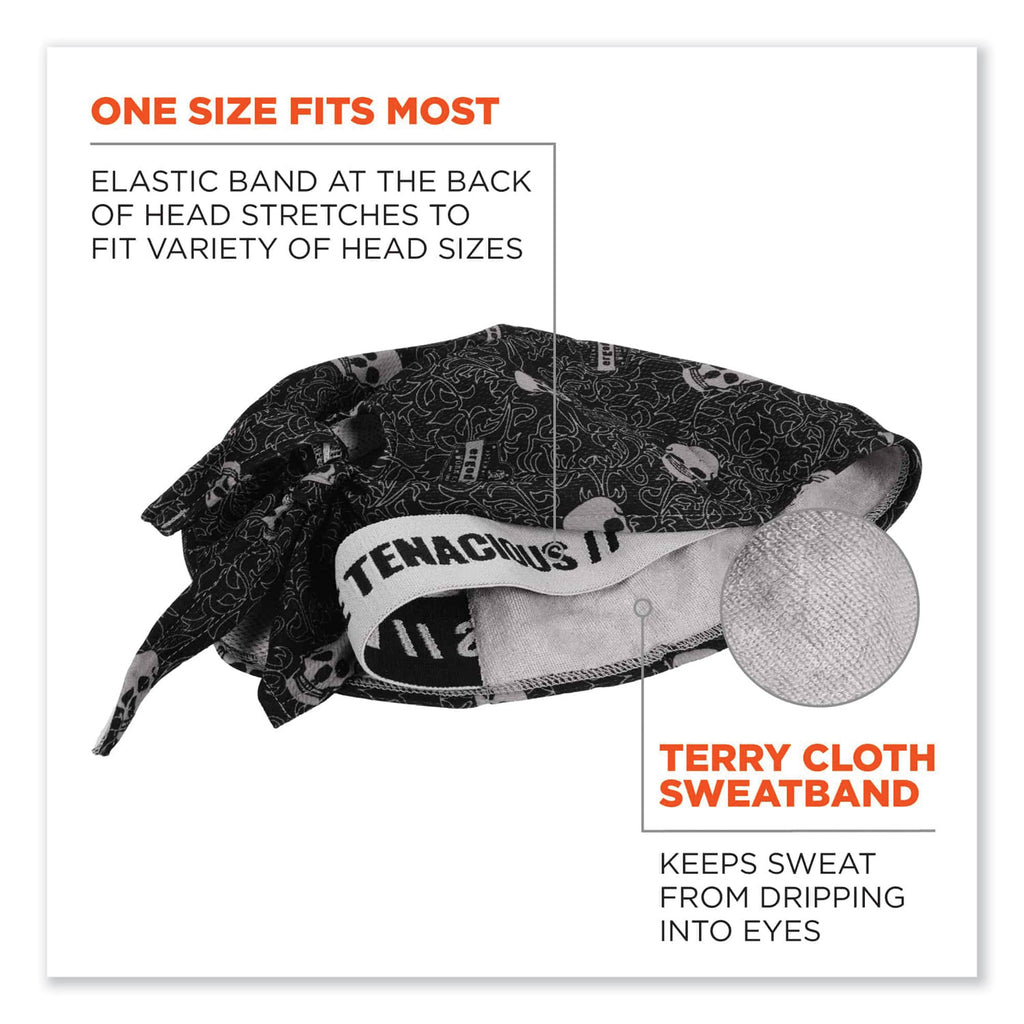 The high-performance bandana doo rag with terry cloth sweatband is made with Hi Cool moisture-wicking technology to keep workers comfortably cool and dry on hot days. The Hi Cool performance fabric wicks moisture for quick-drying, while the absorbent terry cloth sweatband prevents sweat from dripping into eyes. This low-profile cooling doo rag can be worn alone or under a hard hat. One size fits most, the back features an elastic band that stretches to comfortably fit a variety of head sizes. To be worn correctly, the three pieces of fabric should also be tied in a knot. Machine wash as needed and hang to dry. Ideal for construction, landscaping, roofing or anyone working in the heat. It is also a great bandana headband for running, hiking and other recreational activities.