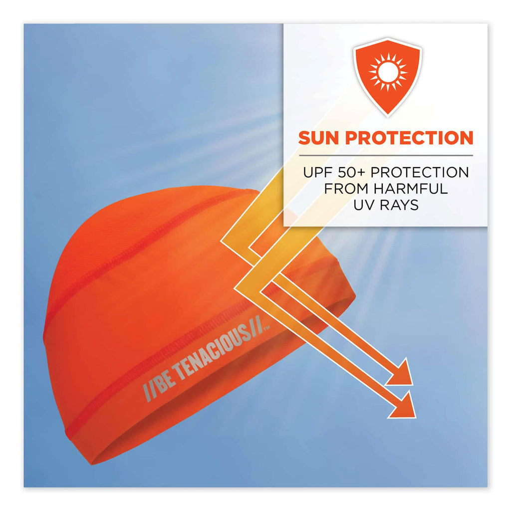 Low-profile cap wicks away moisture when worn dry and provides evaporative cooling relief when worn wet. Designed with stretchy performance knit fabric to provide UPF 50+ sun protection against harmful UV rays. An elastic band lines the interior for a snug and comfortable fit. In order to activate, just soak in water until saturated, then wring out excess water. The evaporative cooling process begins instantly and lasts for hours. If wearing dry, the moisture-wicking fabric draws perspiration away to help keep you dry. Anti-odor treatment keeps this cooling headwear fresh, while reflective accents ensure workers are seen in low-light conditions. The low-profile design fits comfortably under a hard hat or helmet and is great for construction workers, landscaping, roofing, or anybody working in the heat. It can also be used to reduce the risk of heat stress while mountain biking, motorcycling, gardening, hiking, playing sports and more.