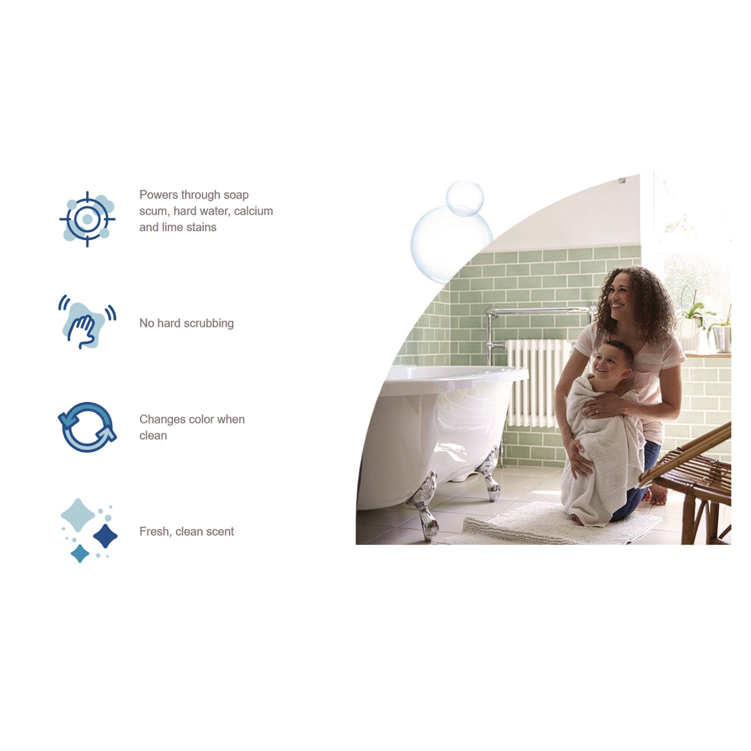 - Use on tubs, glazed ceramic tile, fiberglass, shower doors and vinyl curtains, sinks, countertops and chrome fixtures.