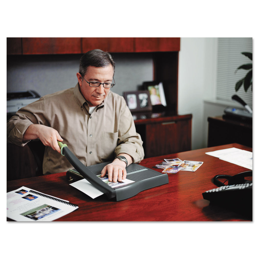 General-purpose paper cutter with guillotine-style blade is ideal for occasional use. Sharp enough to accurately trim cardstock, construction paper and photos. Conveniently sized, lightweight and portable.
