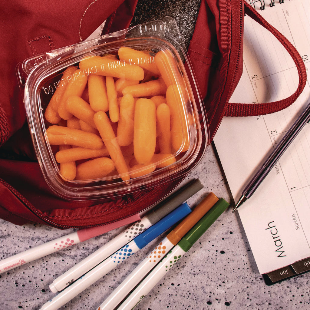 Made of PET, ClearPac SafeSeal™ containers are specifically designed to inhibit tampering, eliminating the need for shrink bands and wrap labels. The TamperAlert Hinge™ protrudes outward when torn, alerting the customer that the container has been opened.