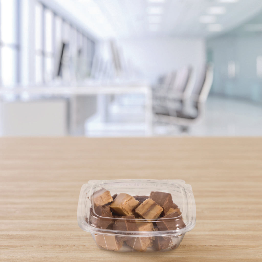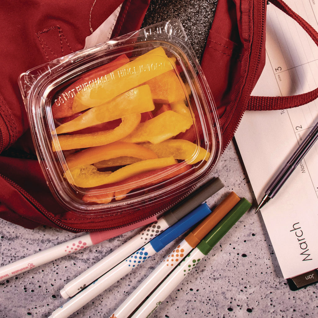 Made of PET, ClearPac SafeSeal™ containers are specifically designed to inhibit tampering, eliminating the need for shrink bands and wrap labels. The TamperAlert Hinge™ protrudes outward when torn, alerting the customer that the container has been opened.