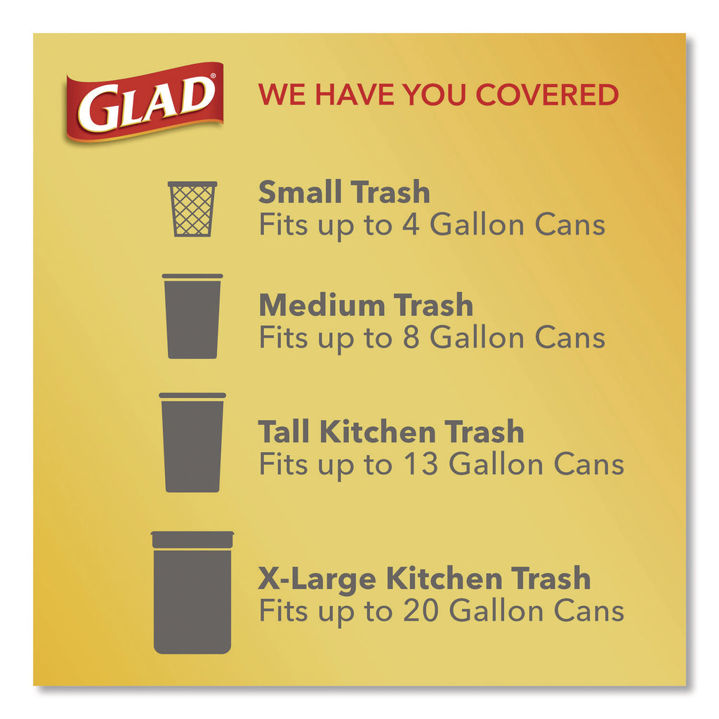 - Handle all your daily household and everyday demands with Glad's small sized garbage bag.