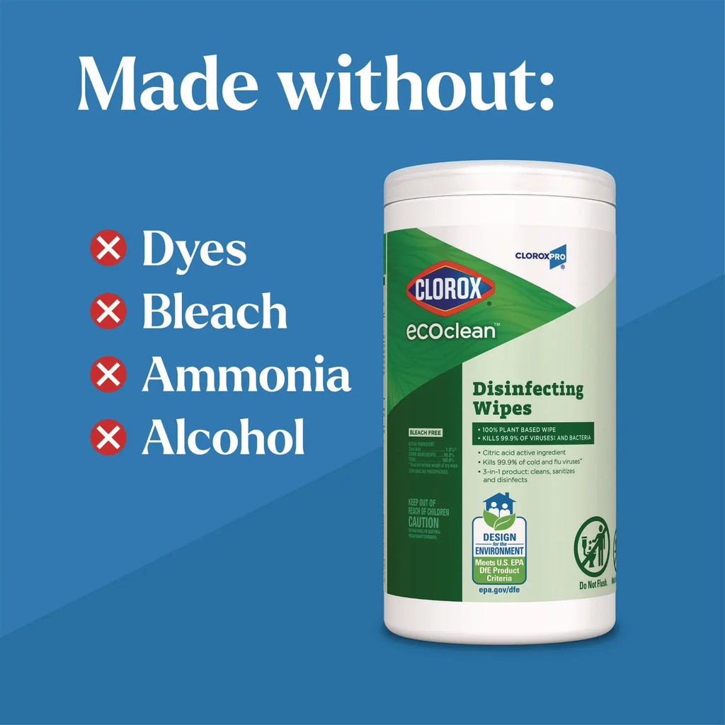 - Versatile: Use Clorox EcoClean™ Disinfecting Wipes to clean, sanitize, disinfect, and remove allergens from high touch surfaces in shared spaces