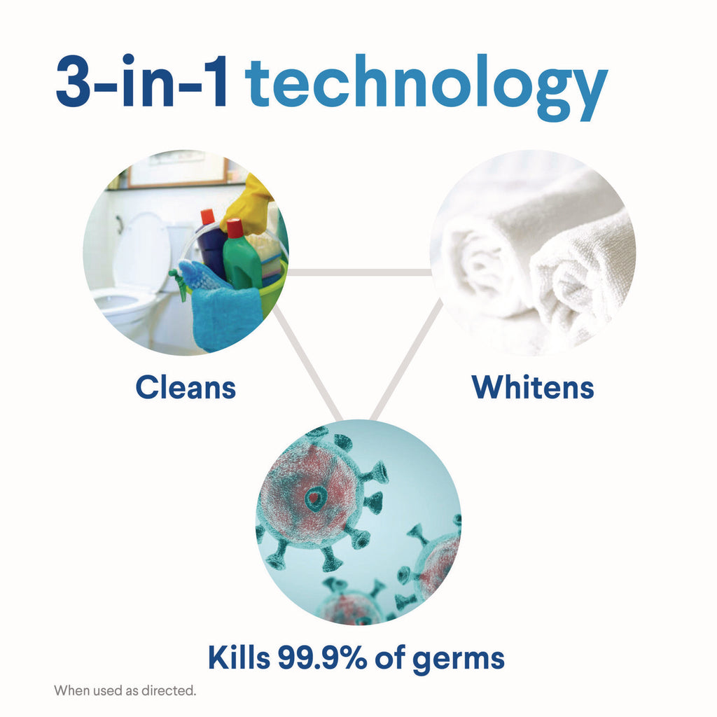 - Contains CloroMax Technology to keep clothes whiter longer and protects household surfaces by reducing soil adhesion as it cleans so stains won't stick and cleanup is easier.