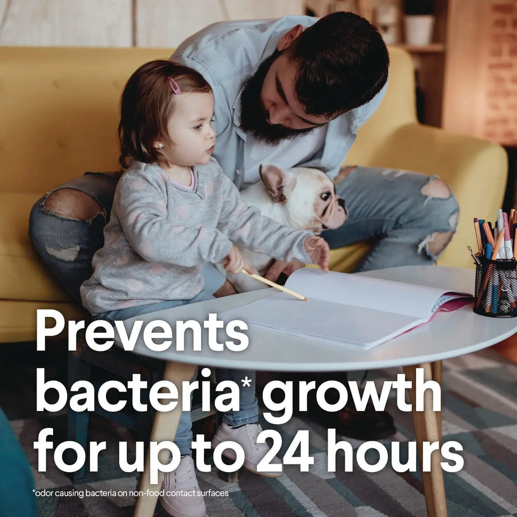 - These disinfecting wipes' clear drying formula breaks down grease, soap, scum, and grime so you can tackle any surface with confidence and prevents bacteria growth for up to 24 hours.