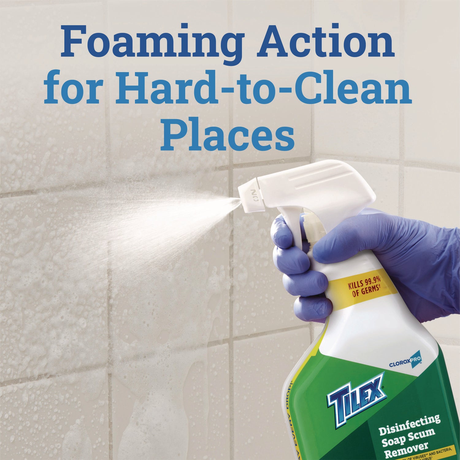 - Penetrating bleach-free foam cleans, disinfects and deodorizes many surfaces including glazed ceramic tile, fiberglass, shower doors, toilets and sinks—no scrubbing required.