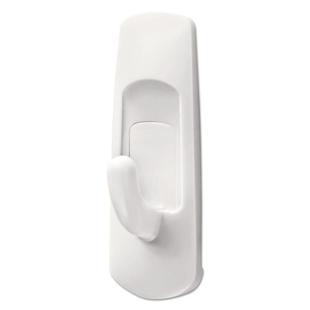 General purpose hooks with adhesive are quick and easy to put up and take down. The hooks adhere firmly to flat surfaces but will not damage walls when removed.