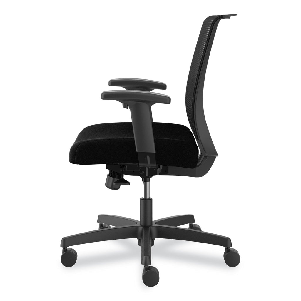 Mesh back is breathable for all-day comfort and support. Seat flexes and stretches to make the soft foam even more responsive. Thick seat cushions to take the stress off the lower body throughout the day. Lumbar support that adds a little extra lower back comfort.