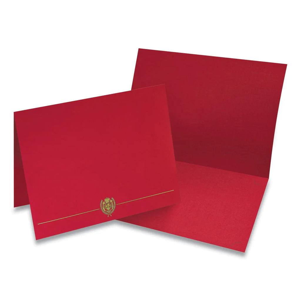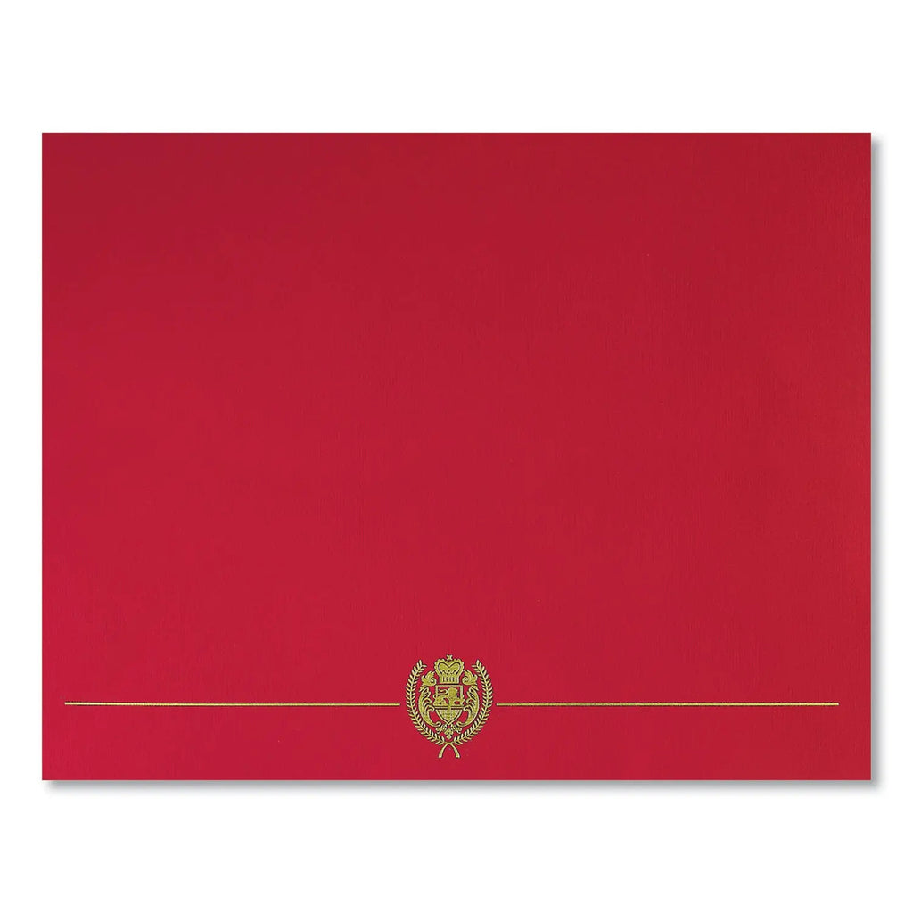 Show appreciation for award recipients with these high-quality certificate covers. Constructed from heavy linen cover stock and embellished with a gold foil crest these folders are durable and make a professional impression. Fit 8.5" x 11" documents and suit horizontal or vertical designs, making them a versatile choice for important presentations.