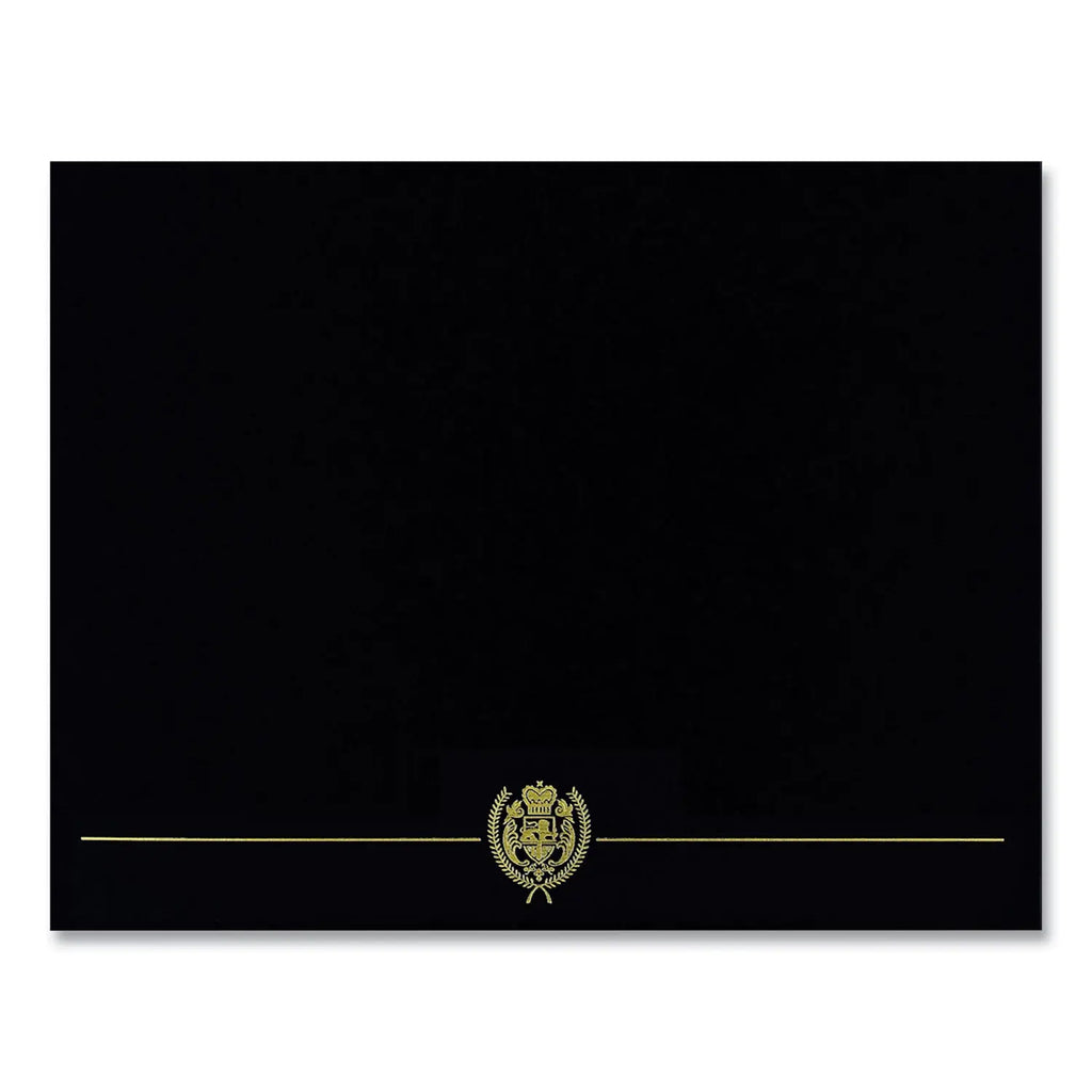 Show appreciation for award recipients with these high-quality certificate covers. Constructed from heavy linen cover stock and embellished with a gold foil crest these folders are durable and make a professional impression. Fit 8.5" x 11" documents and suit horizontal or vertical designs, making them a versatile choice for important presentations.