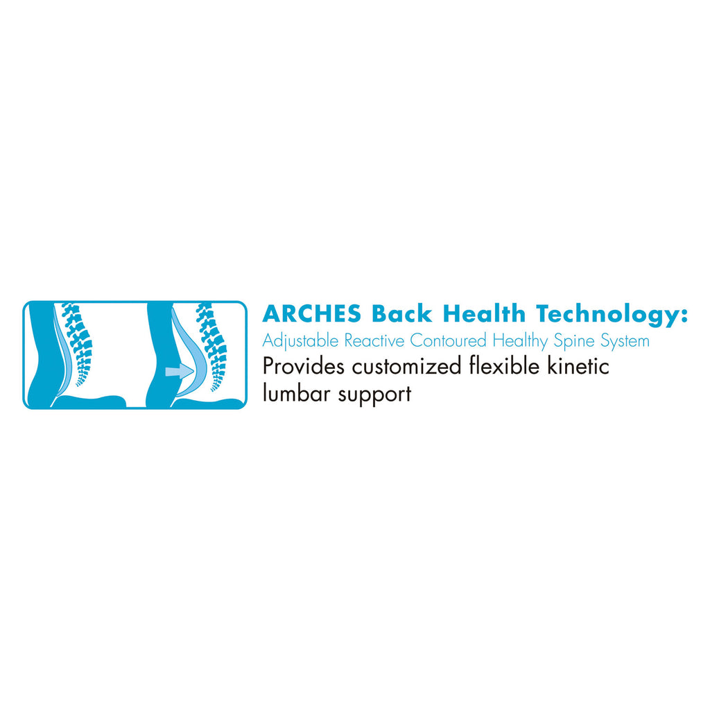 - Adjustable Reactive Contoured Ergonomic Support, ARCHES, back health technology provides customized flexible kinetic lumbar support.