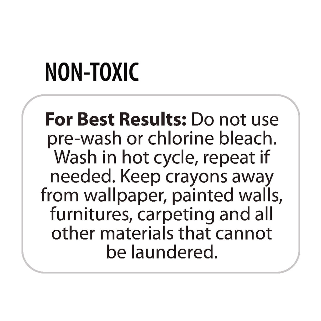 When your little Picasso gets a little carried away with color, these 16 washable colors come in super handy for a quick cleanup. The bold, rich colors easily wash away from skin, clothes and surfaces washable with soap and water. Go ahead, let your fearless artist color outside the lines, in the lines or over lines and express their artistic talent any way they choose. Color on-without worry!
