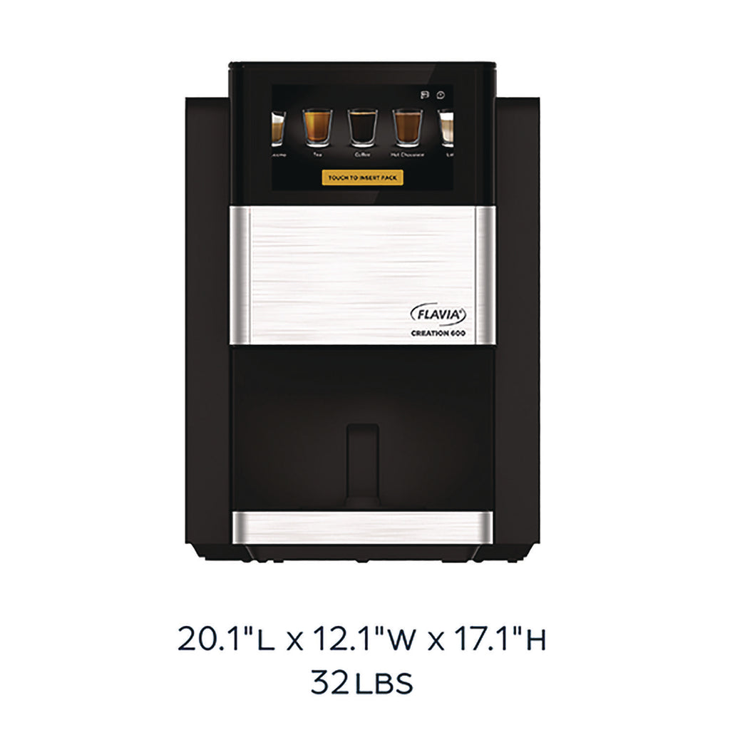 Satisfies your entire office with hot and cold beverages, including coffees, teas, lattes, infused waters and more when paired with the Flavia Chill Module. It comes with patented, in-cup frothing with milk and nondairy alternatives. With the C600, you can craft a variety of drink options that meet the needs of every moment while smart technology makes managing office beverages a breeze. Whether it's soothing hot or frothy drinks for heads-down work or refreshing cold drinks that put a little pep in meeting prep, there's something to put a smile on the face of every coffee connoisseur, latte lover, and iced tea queen to help fuel a wonderful day.