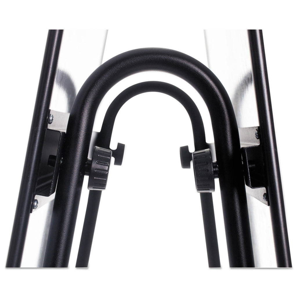 Fully mobile and adjustable double sided easel is versatile enough for any situation. Having adjustable height, this product is usable by any age group. Contains four 2" easy glide casters for enhanced mobility which are lockable when not in use.