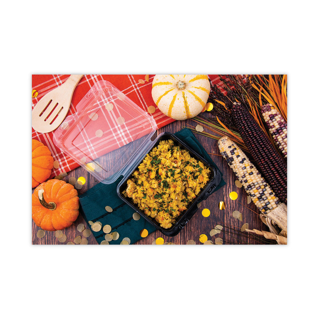 Attractive food boxes come with smooth, clear lids to enhance food presentation. One-piece package with easy-to-close lids adds speed and ease of use to the operation. Stackable design helps conserve space. Anti-fog lids make boxes an ideal choice for both hot and cold use. Durable leak guard closure provides security for grab-and-go applications. Microwaveable food boxes allow for ease of reheating.