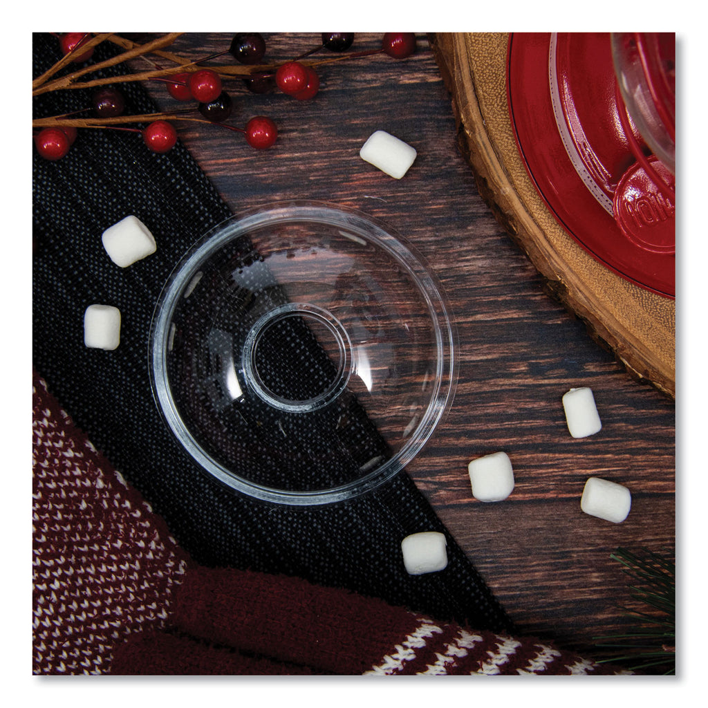 Ultra Clear cup lids provide exceptional clarity, allowing you to put your drinks and frosty treats on display. Durable, crack-resistant PET construction makes it easy to transport beverages without spillage. One lid works for a variety of cups, to conserve storage space and make customer service quick and easy.