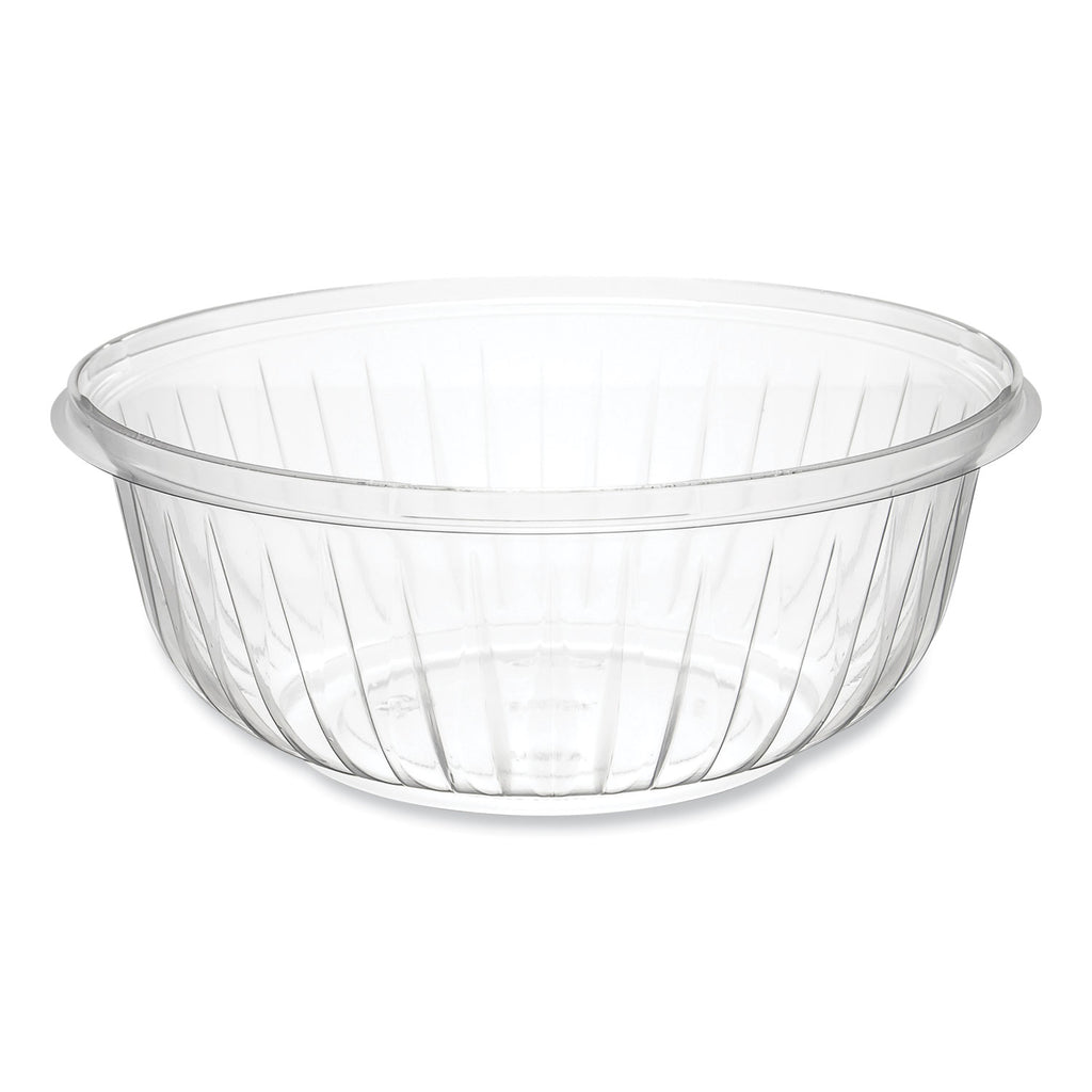 Clear bowls allow you to easily identify the product within. Elegant design on the bowls creates an upscale image. These bowls are also stackable, saving storage space. They're versatile, good for holding many different kinds of items including bakery and deli goods and produce.