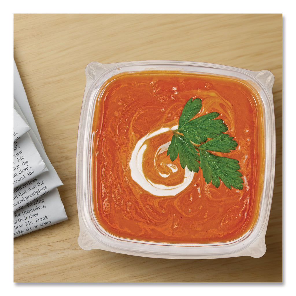 These square bowls not only look great, they make merchandising and delivering food easy. Our bowls are perfect for takeout, delivery, grocery stores and cafeterias. Worry less about messes and spills thanks to the durable, crack-resistant design. Pair with a compatible lid (sold separately), for a reliable and leak-resistant combination. No matter what's inside—from saucy pastas to salads loaded with toppings and dressings—these containers keep food fresh and mess-free!