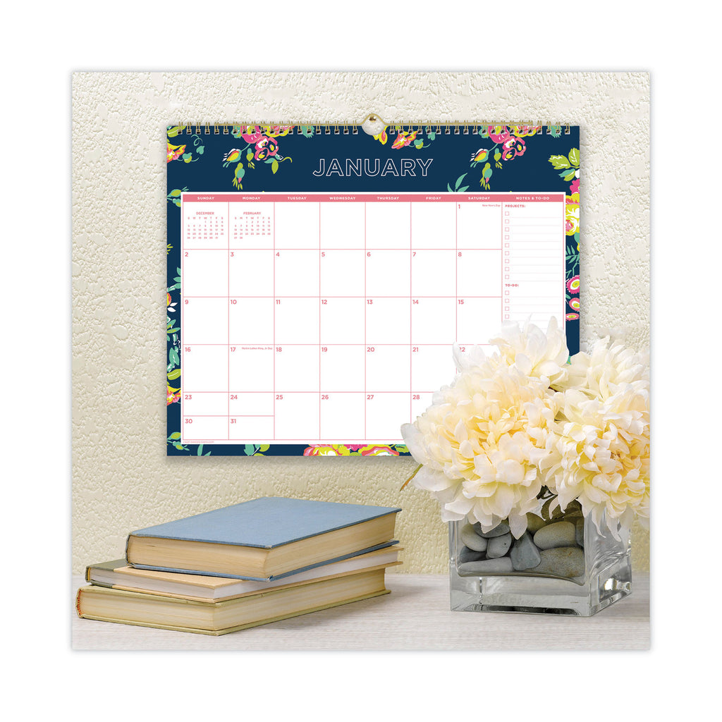 Use this wall calendar as a writing surface to jot down notes, ideas, appointments, reminders and more. Dated planning pages range 12 months from January to December. One page per month format includes Sunday through Saturday scheduling, holidays and past and future months reference. Calendar includes a column on each page for Projects/To-Dos/Notes.