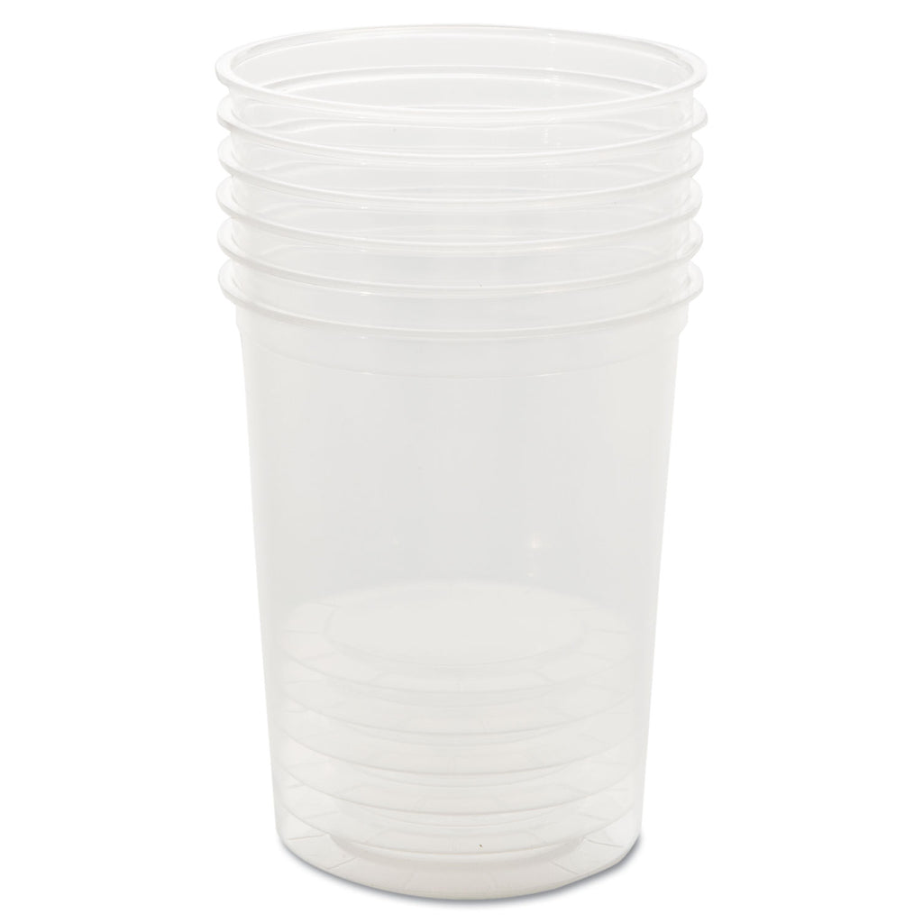 Plastic containers are an excellent way to serve salads, olives, cold cuts and more. Smooth, rounded surfaces take both adhesive and marker labels easily. Refrigerator- and microwave-safe.