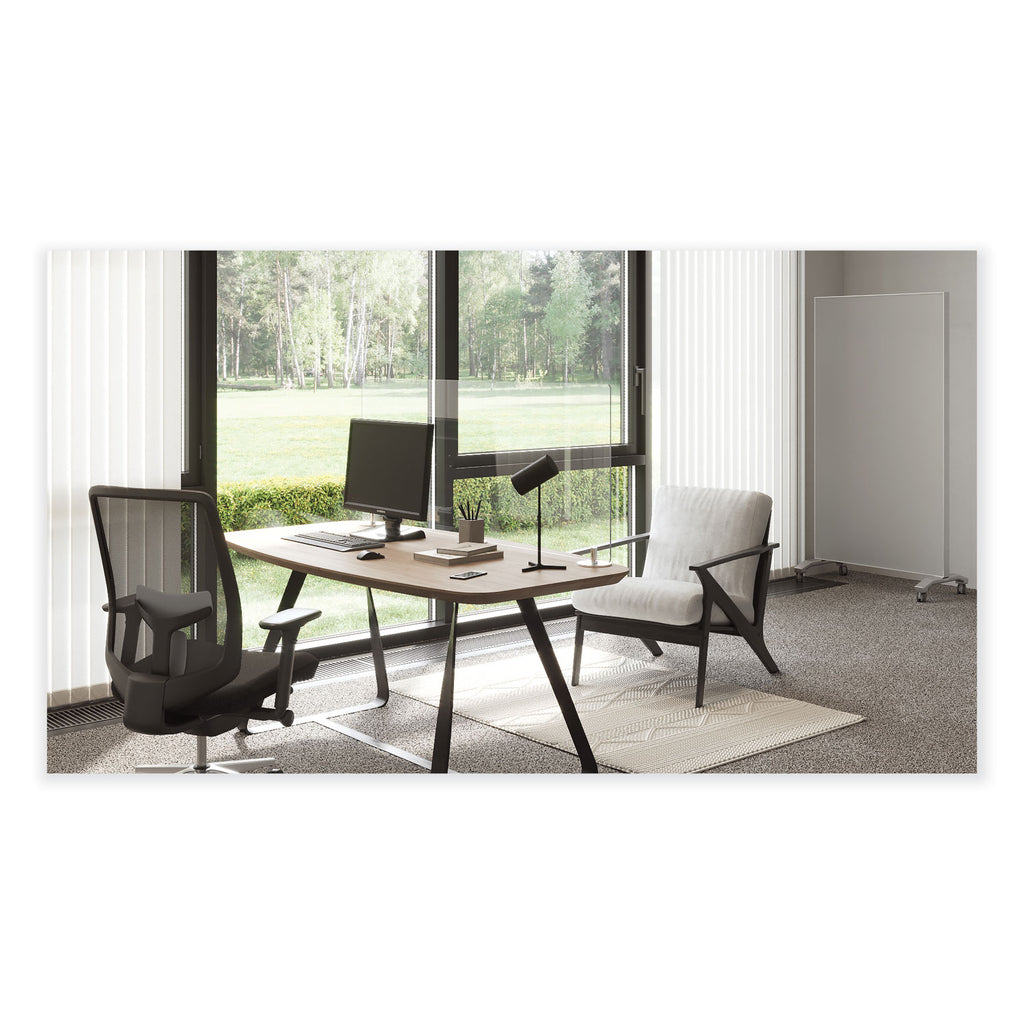 Safely separate desks and workstations. Free standing panel with aluminum feet for stability. Easy to clean. Cleaning Instructions: ONLY USE THE FOLLOWING TO DISINFECT YOUR ACRYLIC SCREEN - pharmacy grade hydrogen peroxide, isopropyl alcohol diluted with water to 30% strength, or household bleach and water (50:1). Other products can damage your screen. Apply with soft clean cloth.