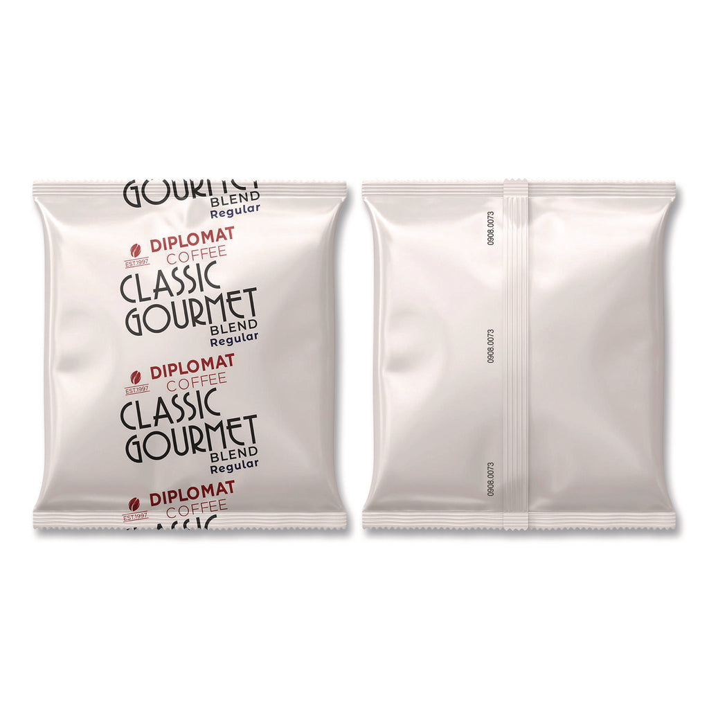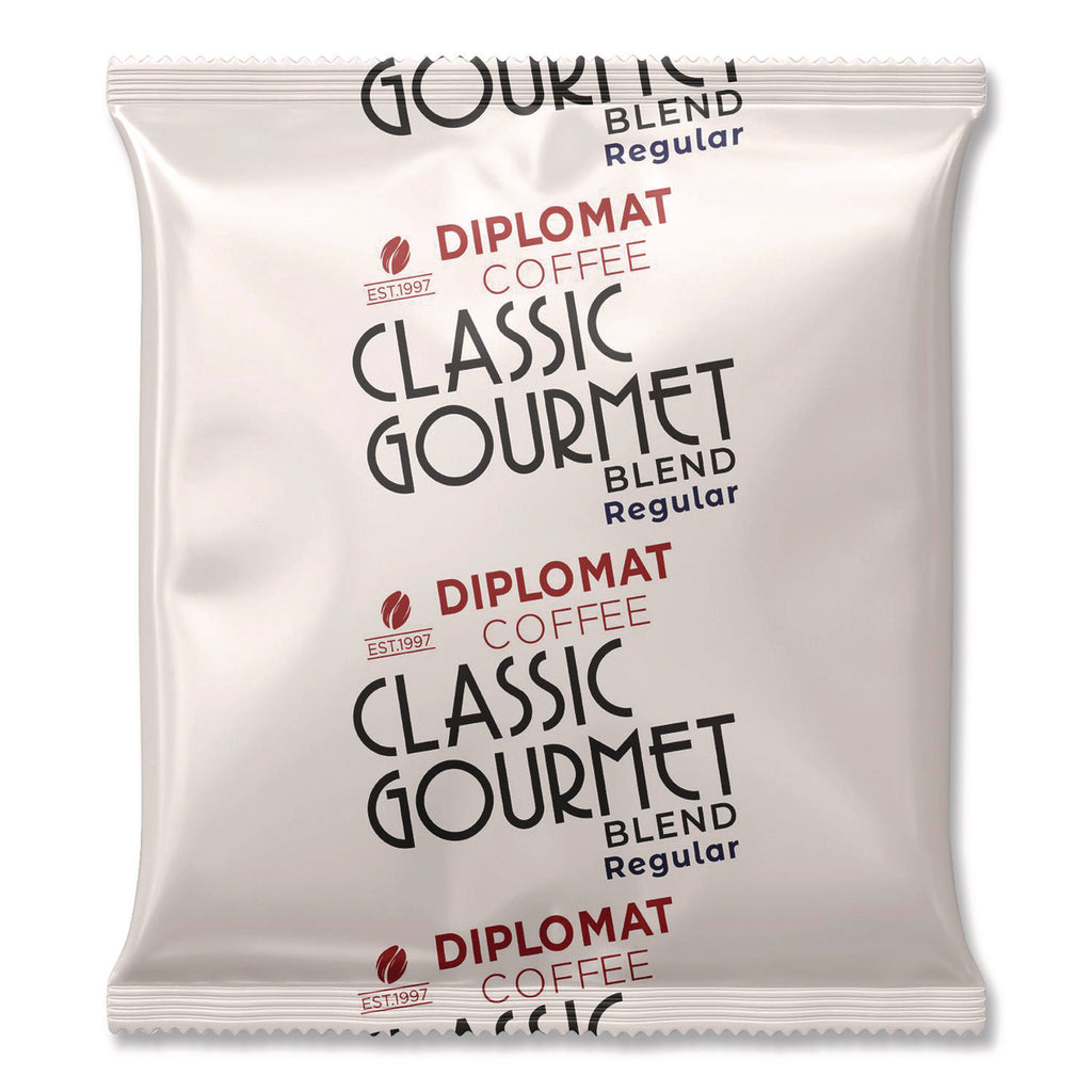 For those who appreciate the rich tradition of expertly roasted coffee, Diplomat Coffee's Classic Gourmet delivers a cup that's as smooth as it is bold. Carefully crafted from the finest beans, this premium blend is roasted to perfection, balancing deep, toasty aromas with rich flavors of dark chocolate, roasted nuts and a touch of caramelized sweetness. From the first sip, you'll notice its full-bodied complexity and velvety texture—an ideal companion for early mornings, midday breaks or those moments when only a truly exceptional coffee will do. Whether enjoyed black for a pure, robust experience or with your favorite milk for added creaminess, Classic Gourmet promises a consistently satisfying cup, every time. At Diplomat Coffee, we believe great coffee is more than just a drink—it's a ritual, a moment of indulgence, and a daily source of inspiration. That's why we've perfected this blend to offer the perfect balance of strength, smoothness and unmistakable quality. Choose Classic Gourmet and taste the craftsmanship in every sip.