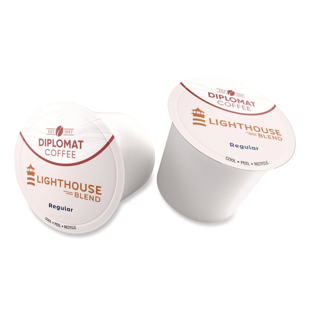 Start your day with the vibrant, refreshing taste of Diplomat Coffee's Lighthouse Roast DC Cups. Crafted for those who crave a light, yet flavorful coffee experience, this medium-light roast features bright citrus notes and a delicate touch of honeyed sweetness, creating a cup that's as uplifting as it is delicious. The crisp, clean finish leaves your palate feeling refreshed and ready for whatever the day brings. With Lighthouse Roast, you get the perfect balance of brightness and smoothness, making it ideal for those who prefer a coffee that's flavorful but not overwhelming. It's the perfect choice for those looking for a lively morning pick-me-up or a mid-afternoon refreshment. Whether enjoyed black or with a splash of milk, Lighthouse Roast DC Cups provide a consistently exceptional cup without any hassle. Designed for convenience, the cups are perfect for those busy mornings, office breaks, or whenever you need a quick and satisfying coffee fix. No measuring, no mess—just rich, fresh coffee in seconds. Compatible with most single-serve brewers, these pods bring premium flavor with the ease of single-serve brewing, delivering the high-quality taste you deserve with minimal effort. Whether you're a longtime fan of lighter roasts or someone looking to try something new, Lighthouse Roast DC Cups offer a bright, flavorful coffee experience that will become your go-to choice for any time of day. Light up your coffee routine with Diplomat Coffee's Lighthouse Roast DC Cups and enjoy the perfect balance of refreshing citrus notes and smooth coffee goodness, all in a single-serve cup.