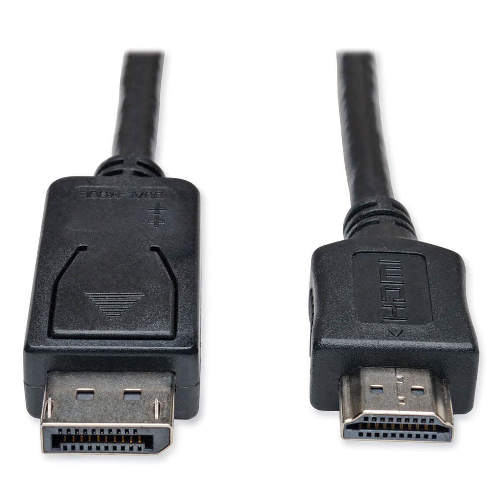 Save money by connecting your DisplayPort laptop to an existing HDMI display. This DisplayPort to HDMI cable (M/F) allows you to play stereo audio and high-definition video from your DisplayPort computer or laptop on an HDMI television, monitor or projector. You can continue using your existing HDMI display and HDMI cable without the time, effort or expense of replacing it with a new DisplayPort monitor. It is an easy, inexpensive way to play video in classrooms, conference rooms, lecture halls, trade shows and other on-the-road presentations. Transmits outstanding 1080p video for high-definition presentations. This DisplayPort to HDMI converter adapter supports computer video resolutions up to 1920 x 1080 (at 60 Hz) and HDTV resolutions up to 1080p with 36-bit Deep Color. Watching videos and playing games on a large-screen HDMI monitor is enhanced by the cable's support of 7.1-channel surround sound. Passive adapters require DisplayPort++ for HDMI pass through. Because it is a passive adapter, this adapter cable requires that the connected source device have a DisplayPort++ (DP++) dual-mode port, which allows HDMI signals to pass through. Check your DisplayPort source's documentation for compatibility. Ready to use right out of the package. Ideal for displaying video on a large monitor or digital sign, the cable is perfectly sized for carrying in your briefcase or laptop bag for convenient use anywhere. Just connect the male DP end to your computer's DisplayPort and the female HDMI end to an HDMI cable to begin sharing HD audio/video signals. The plug-and-play adapter requires no software, drivers or external power.