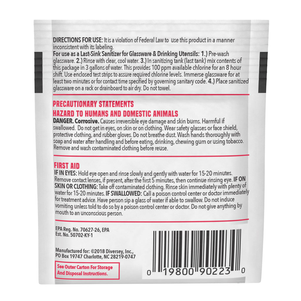 - Designed specifically for use in the third sink of three-compartment sinks for the sanitation of all types of glassware. It rinses clean and leaves no odor, aftertaste, or residue.